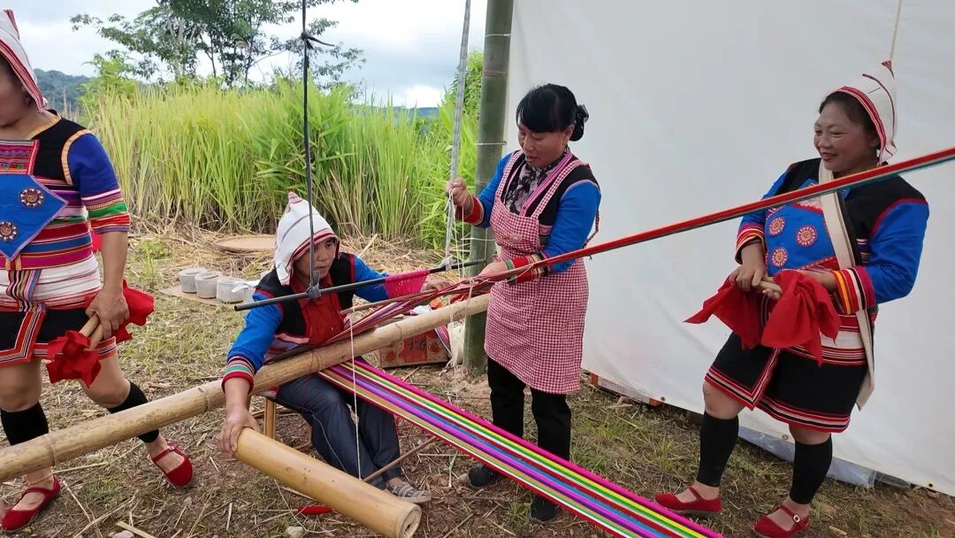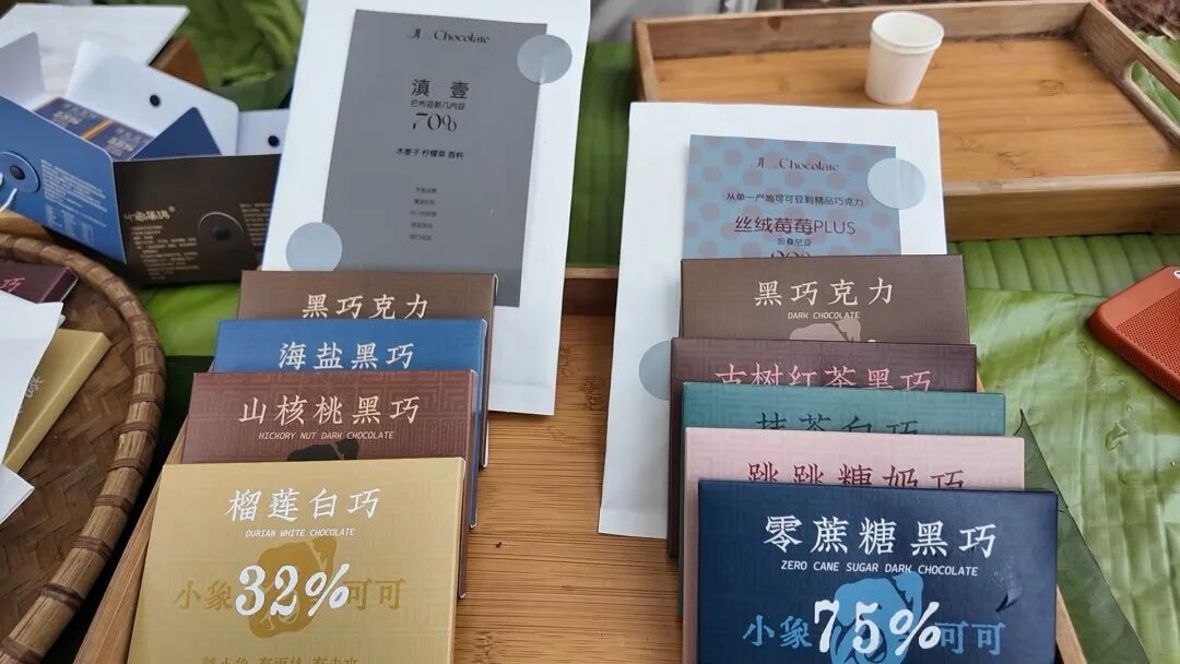 活动现场,创意集市率先“开市”,既有基诺族非遗传承人现场演示基诺织锦,也有村民自家产的普洱茶、土蜂蜜,更有创意十足的文创手作、本土可可果巧克力等商品及基诺族、哈尼族等民族特色饰品,引得大家纷纷驻足选购。
