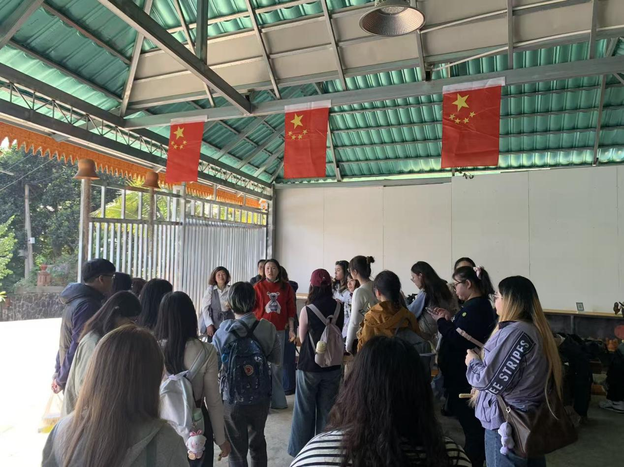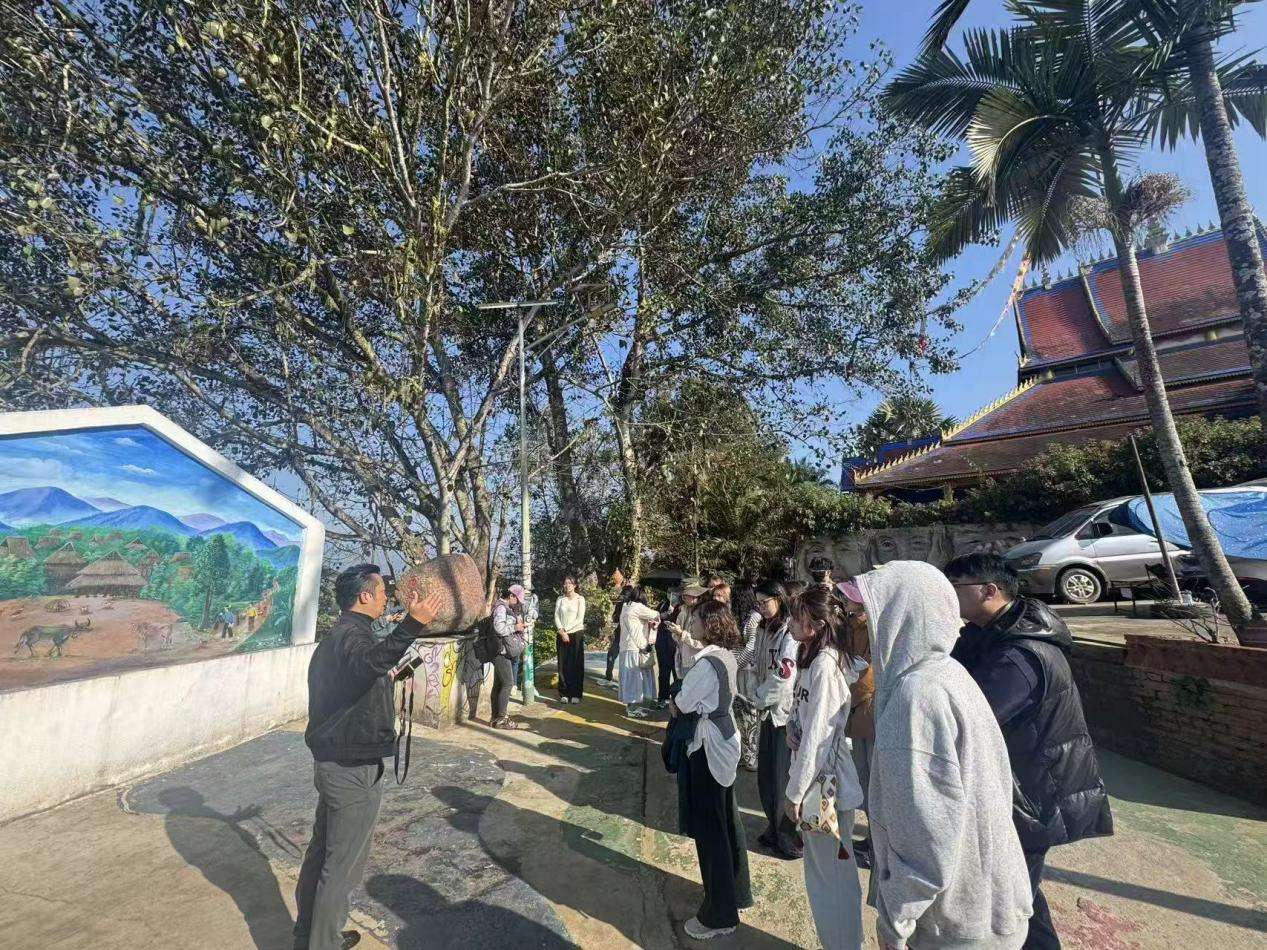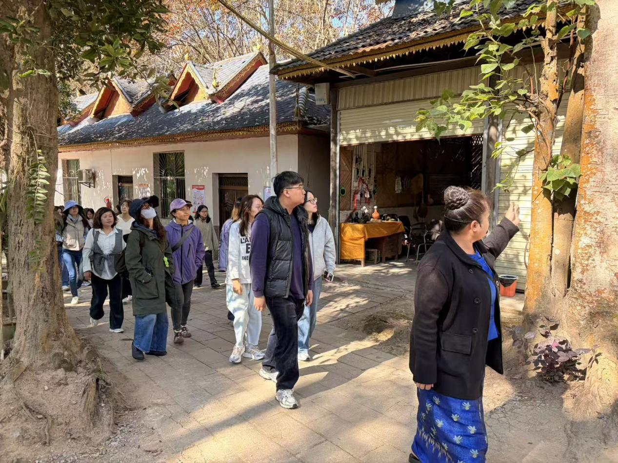 第二站曼飞龙白塔,师生们驻足这座国家级重点文物保护单位,端详金刚宝座式塔群形制,聆听南传佛教文化在版纳的传播历程,触摸塔身斑驳砖石纹理,感受千年古建筑的历史厚重感与建筑美学价值。