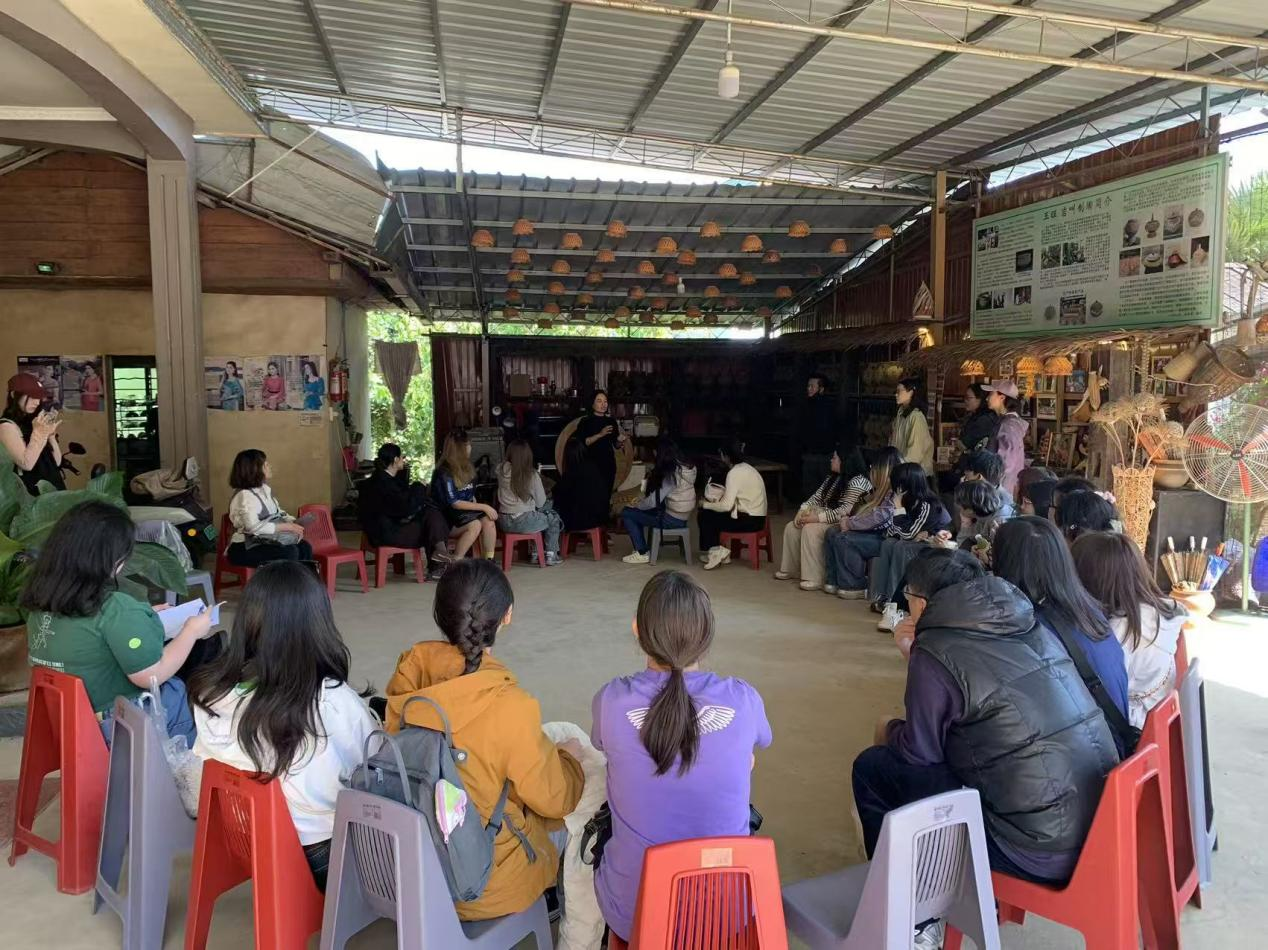 首站曼勒美术村,在勐龙镇党群服务中心负责人岩香双的引导讲解下,师生们沿着村寨巷道观摩墙体彩绘。壁画融入傣族神话、传统节庆等民俗元素,也结合基层治理、民族团结等时代主题,工作人员细致解读创作背景与深层寓意,让师生直观看到艺术美化乡村、文化浸润民心的生动成果。